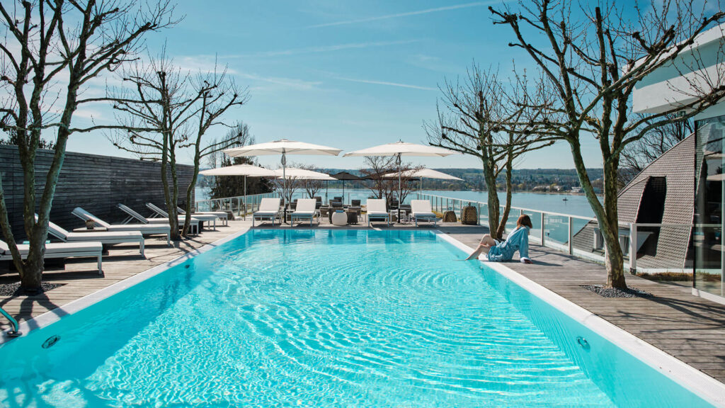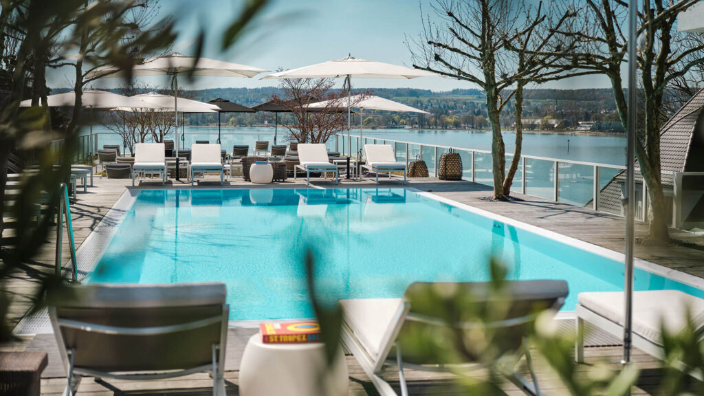 Eine elegante Jugendstilvilla und ein lichtdurchfluteter Neubau bilden die spannende Symbiose aus Tradition und Moderne. Der stete Blick auf den See wird umrahmt von dem Spiel mit den Elementen, von dem das ganze Haus geprägt ist. Rückzugsräume öffnen sich, Kreisläufe schließen sich – herzlich willkommen in der Welt des RIVA, die es immer wieder neu zu entdecken gilt.