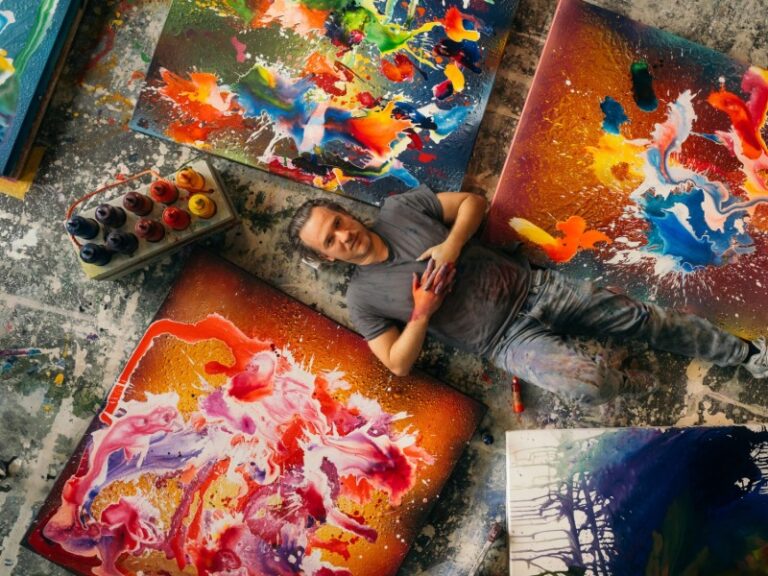 Ikonische Figuren der Popkultur wie Mickey Mouse und andere Comicfiguren oder Filmstars verbinden sich in seinen Kunstwerken zu einer Mischung aus Glamour und einer spielerischen Hommage an bekannte Symbole und Idole.