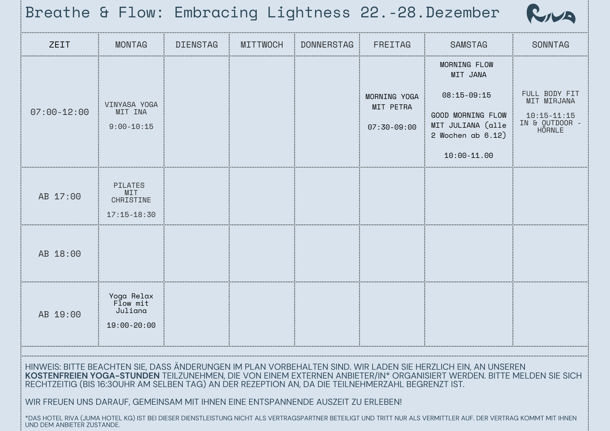 Hinweis: vom 23.12. bis 02.01.2026 findet kein Late Night Spa statt.